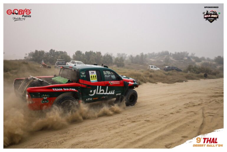 Day 2 Highlights: The heat was on! Max Dirt Racing, fueled by Gobi’s Paints, delivered an electrifying performance on the sands of Thal. With competitors pushing their limits, the day was packed with heart-pounding moments and fierce battles for the lead. From thrilling overtakes to dust-kicking drifts, the racers left everything on the track. And there’s still more action to come—stay tuned for an epic finish!