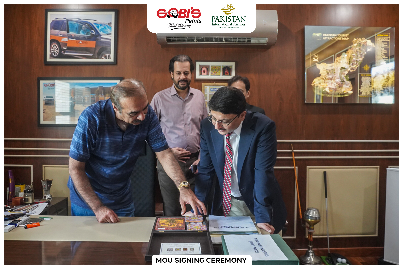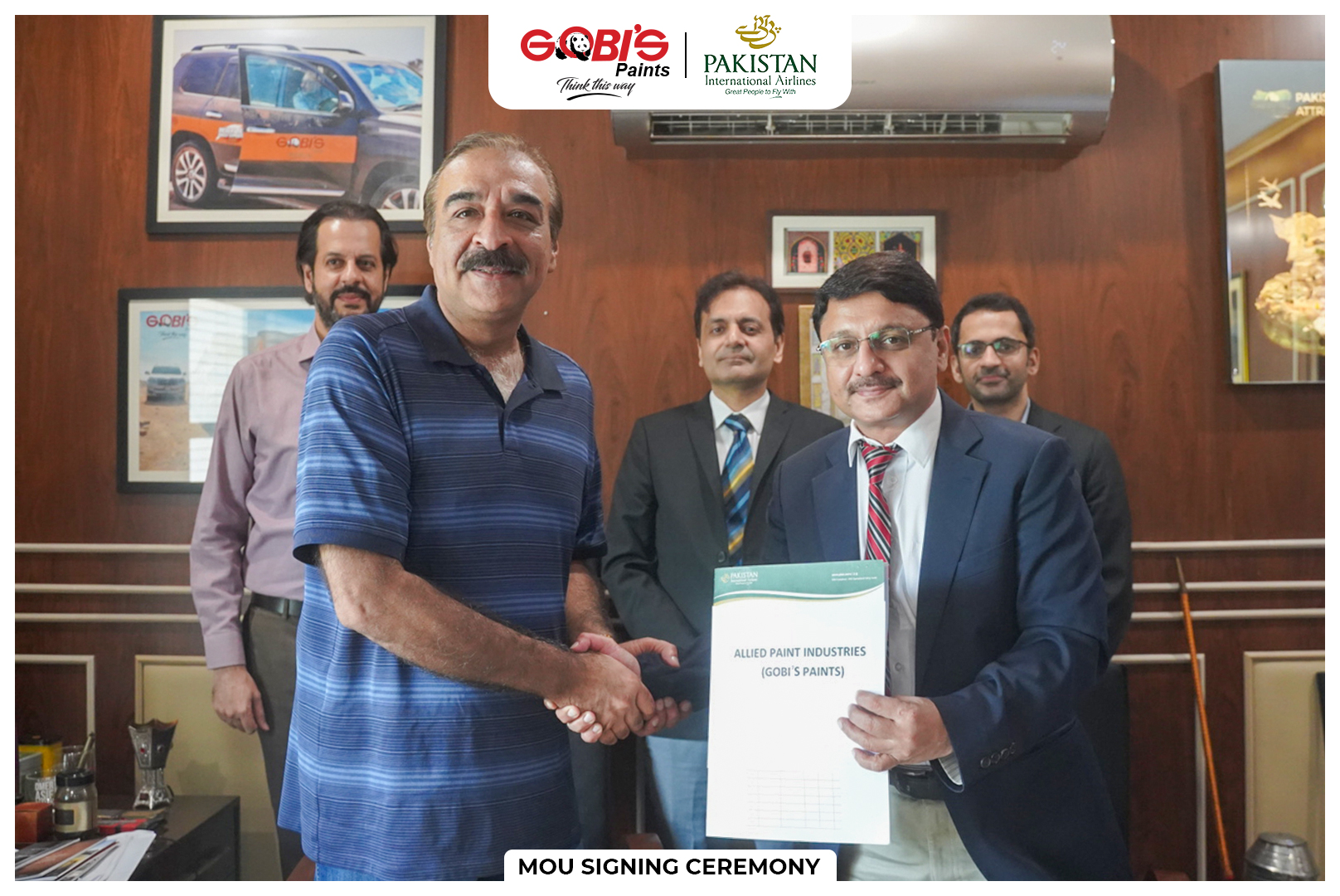 We are pleased to announce the signing of a Memorandum of Understanding between Allied Paint Industries Ltd (Gobi’s Paints) and Pakistan International Airlines (PIA), establishing a corporate partnership that offers exclusive travel discounts for Gobi’s employees on all domestic and international routes. As part of this collaboration, Gobi’s Paints will also serve as a preferred partner for PIA’s environmental CSR initiatives and inflight entertainment programs reflecting our shared commitment to sustainability and national pride. The signing ceremony was attended by Mr. Omer Asif Malik, CEO – Gobi’s Paints, Major Asim Zafar (Retd), COO – Gobi’s Paints, Mr. Wajid Salim, District Manager – Lahore, PIA, Mr. Asad Salahuddin, Corporate Manager – Lahore, PIA, Mrs. Abdul Rehman, Pax Sales Manager – Lahore, PIA, Mr. Hasnat Ghani, Assistant Corporate Sales Manager – Lahore, PIA This collaboration marks a significant step in promoting tourism and strengthening corporate ties with our national carrier.